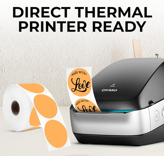Perco Orange 2-Inch Perforated Circle Dot Thermal Sticker Labels — 735 Stickers/Roll, Direct Thermal Printer Compatible—with Permanent Adhesive for Organizing, Color Coding, Bin Labeling—Made in USA
