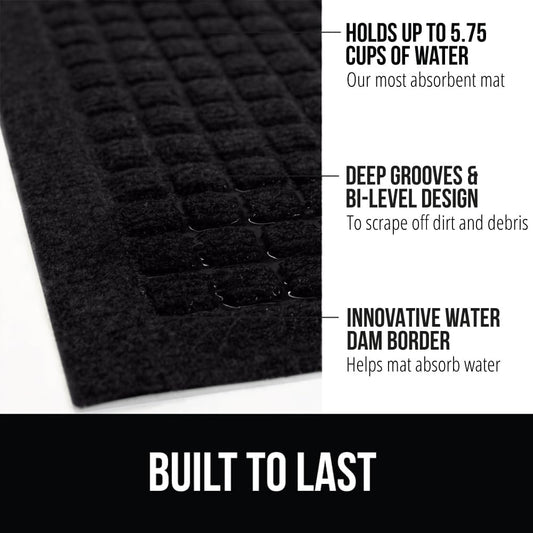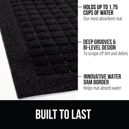 GORILLA GRIP Front Door Mat, 47x35, Indoor Outdoor Ultra Absorbent HydroAbsorb Doormat, Absorbs Up to 6 Cups of Water, Stain and Fade Resistant, Rubber Backing Doormats, Captures Dirt, Black