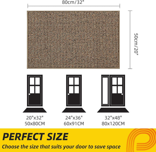JSEI Dirt Trapper Door Mat 20"x32" Non-Slip Washable Entrance Mat, Dog Doormats, Absorbent & Fade-Resistant Floor Mats, Low Profile Welcome Mats for Entryway, Front Door, and Inside Entrance, Brown