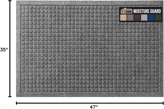 GORILLA GRIP Front Door Mat, 47x35, Indoor Outdoor Ultra Absorbent HydroAbsorb Doormat, Absorbs Up to 6 Cups of Water, Stain and Fade Resistant, Rubber Backing Doormats, Captures Dirt, Gray