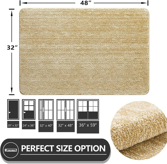 JSEI Dirt Trapper Door Mat 32"x48" Non-Slip Washable Entrance Mat, Dog Doormats, Absorbent & Fade-Resistant Floor Mats, Low Profile Welcome Mats for Entryway, Front Door, and Inside Entrance, Beige