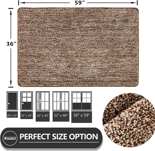 REFETONE Indoor Doormat, Front Door Mat 36"x59" Absorbent Rubber Backing Non Slip Back Door Mats, Washable Low-Profile Inside Floor Mat Door Rugs for Entryway, Resist Dirt Mud Mat for Dogs, Coffee
