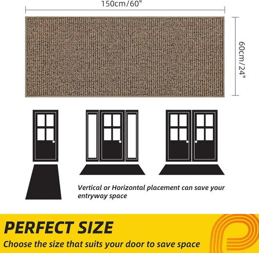 REFETONE Indoor Doormat, Front Door Mat 36"x59" Absorbent Rubber Backing Non Slip Door Mats, Washable Low-Profile Inside Floor Mat Door Rugs for Entryway, Resist Dirt Mud Mat for Dogs, Coffee/Brown