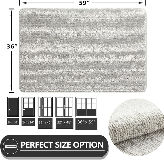 REFETONE Indoor Doormat, Front Door Mat 36"x59" Absorbent Rubber Backing Non Slip Back Door Mats, Washable Low-Profile Inside Floor Mat Door Rugs for Entryway, Resist Dirt Mud Mat for Dogs, Grey