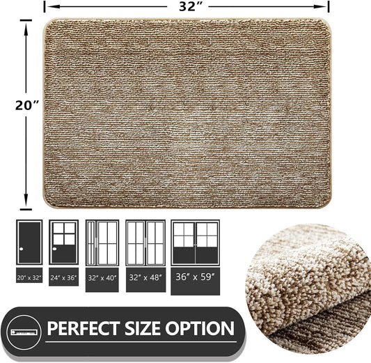 REFETONE Indoor Door Mat, Front Back Door Mat, Non-Slip Absorbent Resist Dirt Entrance Rug Inside Floor Mats, Machine Washable Low-Profile Inside Entry Door Rugs for Entryway - 20" x 32", Tan