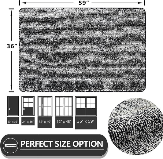 REFETONE Doormat, 36"x59", Indoor, Dark Grey - Absorbent, Non Slip, Machine Washable, Resist Dirt, Low-Profile Entry Rug for High-Traffic Areas