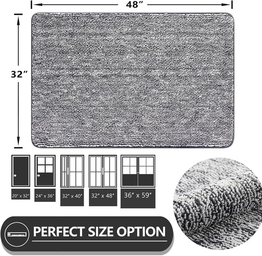 REFETONE Indoor Doormat, Front Door Mat 32"x48" Absorbent Rubber Backing Non Slip Back Door Mats, Washable Low-Profile Inside Floor Mat Door Rugs for Entryway, Resist Dirt Mud Mat for Dogs, Grey