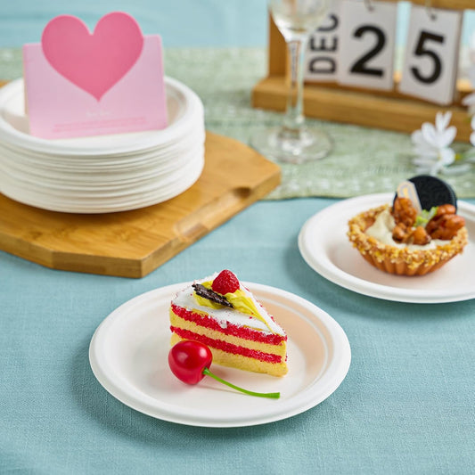 7 Inch Compostable Paper Plates 【White 150 Pack】, 100% Sugarcane Bagasse Small Dessert Plates, Bulk Disposable Plates, Sturdy Heavy Duty, Biodegradable Dinnerware for Party, Picnic, BBQ