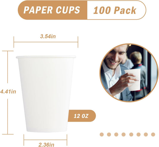 Lamosi 100 Pack 12 oz Paper Cups, Disposable Paper Coffee Cups 12oz, Hot/Cold Beverage Drinking Cups for Water Juice or Tea, Perfect for Office Party Home Travel