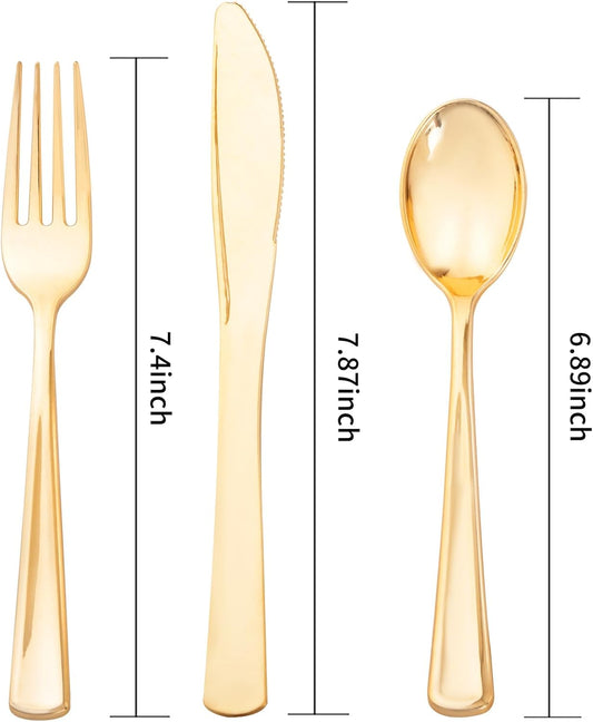 Liacere 200Pcs Gold Plastic Silverware-Gold Plastic Cutlery - Disposable Silverware include 100 Forks 50 Spoons 50 Knives Perfect for Parties&Weddings&Restaurants&Thanksgiving