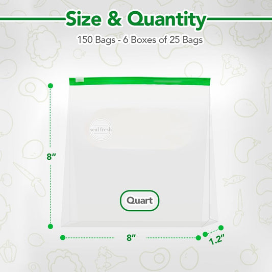 Quart Slider Storage Bags 150 Pack — Reusable Freezer Bags with Expandable Bottom, BPA Free, Microwave Safe, Clear Quart Food Storage Bags