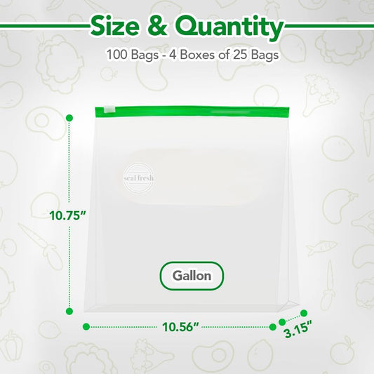 Gallon Slider Storage Bags 100 Pack — Reusable Freezer Bags with Expandable Bottom, BPA Free, Microwave Safe, Clear Gallon Food Storage Bags