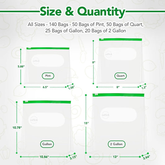 Slider Storage Bags Variety Pack 145 Count — Pint, Quart, Gallon, 2 Gallon Sizes — Expandable Bottom, BPA Free, Microwave Safe, Freezer Safe