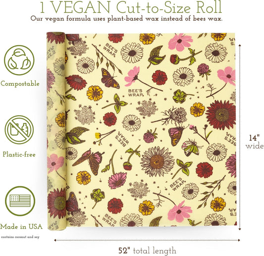 Bee's Wrap Vegan Beeswax Wraps for Food - Meadow Magic Cut to Size 14x52" Wax Paper Roll, Made in USA Reusable Waxed Paper & Bowl Covers, Organic Eco-Friendly Alternative to Aluminum Foil Plastic Wrap