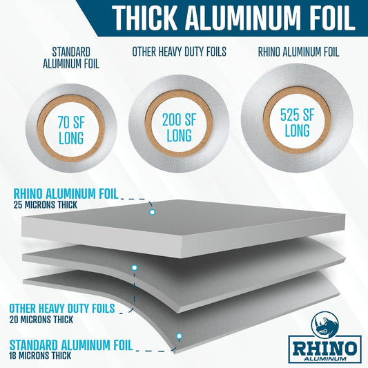 Rhino Aluminum Heavy Duty Aluminum Foil - 18 x 525 sf Roll, 25 Microns Thick - Commercial Grade & Extra Thick, Strong Enough for Food Service Industry (Pack of 1)