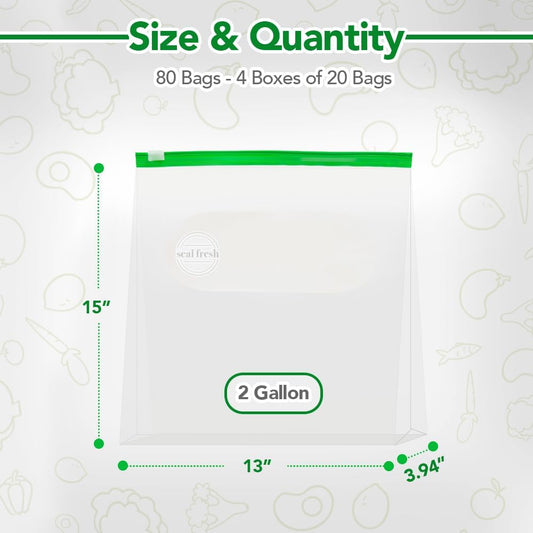 2 Gallon Slider Storage Bags 240 Pack — Jumbo Reusable Freezer Bags with Expandable Bottom, BPA Free, Microwave Safe, Clear Heavy Duty Bags