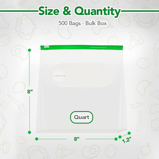 Quart Slider Storage Bags 500 Pack — Reusable Freezer Bags with Expandable Bottom, BPA Free, Microwave Safe, Clear Quart Food Storage Bags