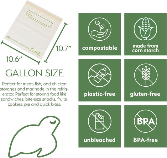 100% Compostable Large Gallon Zip Bag | ECO-Friendly Food Storage Bags | Freezer Bag | Plant-Based BPA-free | Seal well for Fruit,Food and Snack (1, Large)