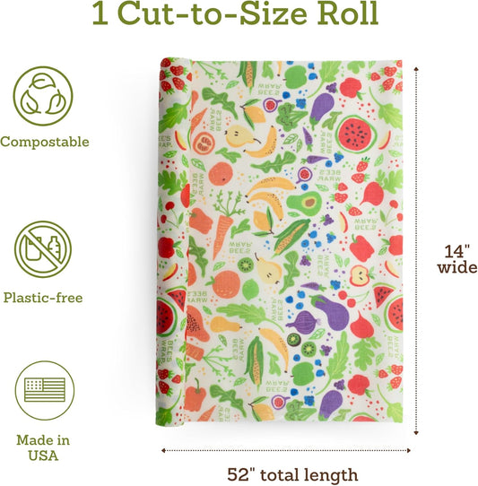 Bee's Wrap Beeswax Wraps for Food - Garden Party Cut to Size 14x52" Wax Paper Roll - Made in USA Reusable Waxed Paper & Bowl Covers - Organic & Eco-Friendly Alternative to Aluminum Foil & Plastic Wrap