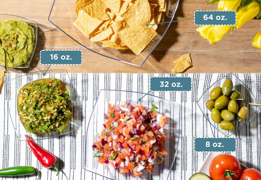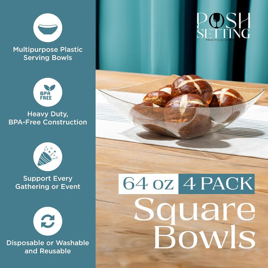 Posh Setting - Clear Plastic Serving Bowls (64oz - 4 Pack) Square, Disposable, Candy & Fruit Bowls for Party Table, Candy Containers