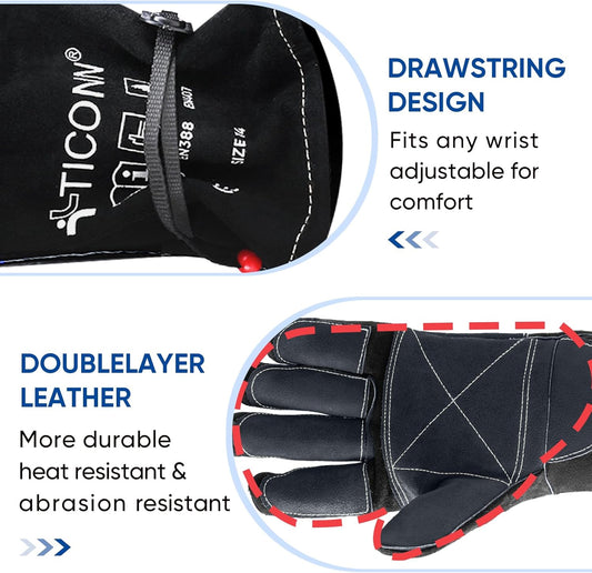 TICONN Welding Gloves, 16 IN L/XL/XXL 1000°F Heat-Resistant Fireproof Leather Gloves for Welders, Stick, Forge, Mig, Tig, BBQ