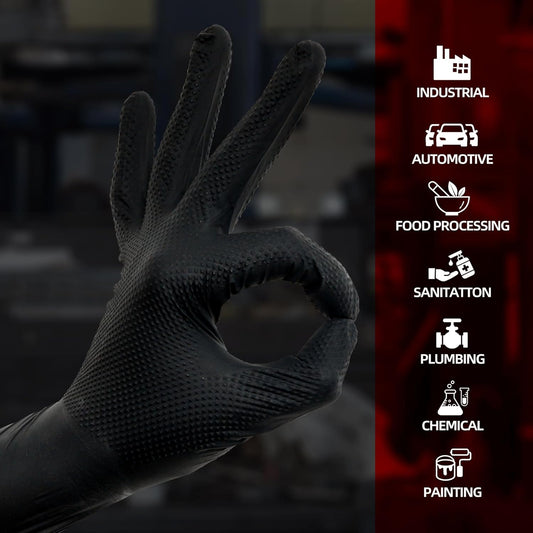 Jointown Basic Heavy Duty Nitrile Gloves, Mechanic Gloves 8 Mil Nitrile Disposable, with Raised Diamond Texture, Case of 500, Black, Large