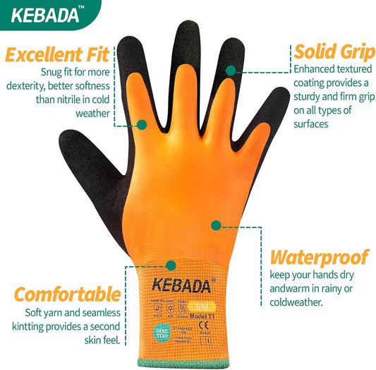 Kebada T1 Waterproof Winter Work Gloves for Men and Women,Insulated Work Gloves for Men Cold Weather,Warm Freezer Gloves Large