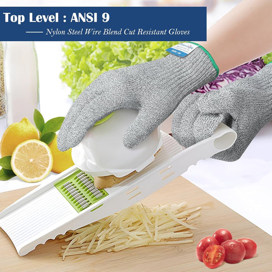 Dowellife Soft Level 9 Cut Resistant Gloves Food Grade, Steel Wire Mixed Kitchen Safety Gloves for Chef Oyster Shucking Mandoline Knife Butcher Meat Cutting Carving (Large)