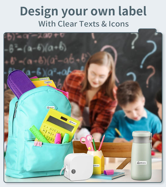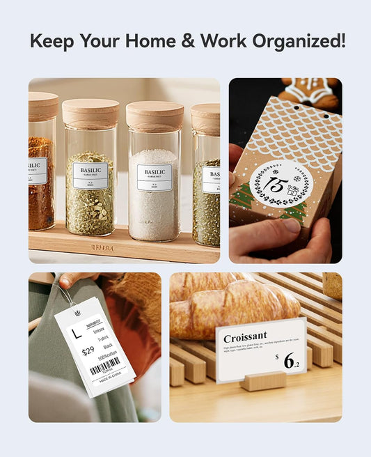 SUPVAN E10 Bluetooth Label Maker Machine with Tape, Continuous Waterproof Label, Versatile App with 35 Fonts and 1k+ Icons, Inkless Labeler for Home, Kitchen, School, Office Organization, White