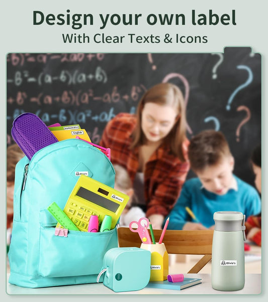 SUPVAN E10 Bluetooth Label Maker Machine with 3 Tapes, Continuous Waterproof Label, Versatile App with 35 Fonts and 1k+ Icons, Inkless Labeler for Home, Kitchen, School, Office Organization, Green