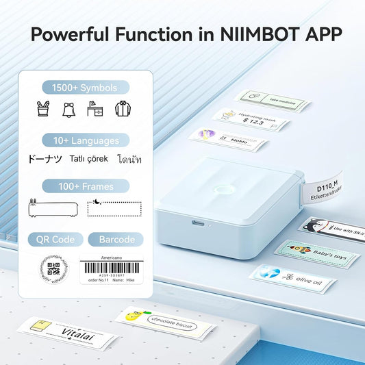 NIIMBOT D110 New Version Label Maker Machine with Tape, Handheld Bluetooth Label Printer, Mini Thermal Printer, Sticker Maker for Organizing Home Kitchen School, Blue