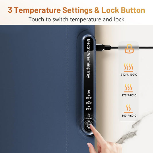 Food Warming Mat- Foldable Warming Mat for Food with Adjustable Temperature Control Time Moders Locking Function Electric Warming Tray for Parties,Home,Travel,Buffet Dark Blue