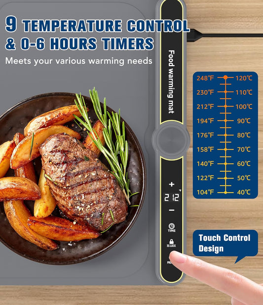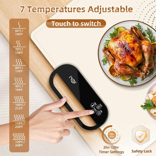 Food Warming Mat, Silicone Heating Tray with 7 Temperature Settings, Quick Full Surface Heating Pad, Thermochromic Line, Kids Lock, Food Warmers for Parties