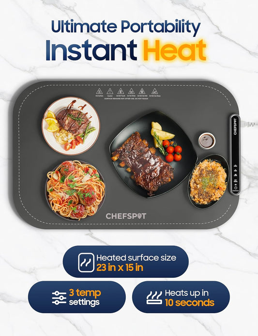 Warming Mat for Food,Food Warming Mat,Electric Warming Tray for Buffets Party and Home Daily Use,Heating Fastly in 10s,Portable Design,Timed Function for Your Family.