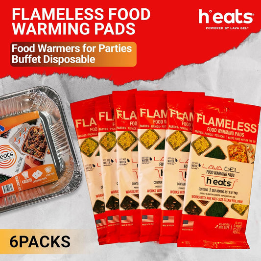 Flameless Food Warming Pads (6 Pack) - Food Warmers for Parties Buffet Disposable - Party Buffet Servers and Warmers for Full Size Pans - Heating Pads for Chafing Dish- Must-Have Catering Supplies