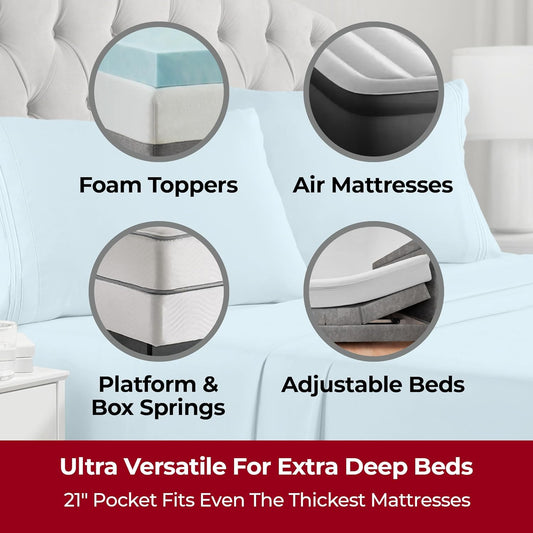 Mellanni Extra Deep California King Sheets - 4 PC Iconic Collection Bedding - Hotel Luxury, Ultra Soft, Cooling Bed Sheets - Wrinkle, Fade, Stain Resistant (Cal King, Aqua)