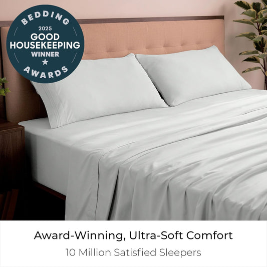 Mellanni California King Sheets Set - 4 PC Iconic Collection Bedding - Hotel Luxury, Extra Soft, Cooling Bed Sheets - Wrinkle, Fade, Stain Resistant (Cal King, Mineral Gray)