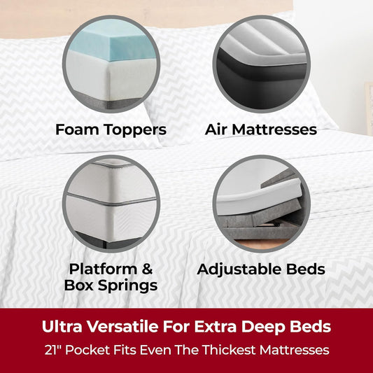 Mellanni Extra Deep Twin Sheets - 3 PC Iconic Collection Bedding - Hotel Luxury, Ultra Soft, Cooling Bed Sheets - Wrinkle, Fade, Stain Resistant (Twin, Chevron Gray)