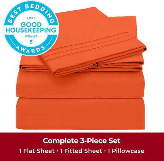 Mellanni Twin Sheets Set - 3 PC Iconic Collection Bedding - Hotel Luxury, Extra Soft, Cooling Bed Sheets - Wrinkle, Fade, Stain Resistant (Twin, Poppy Orange)