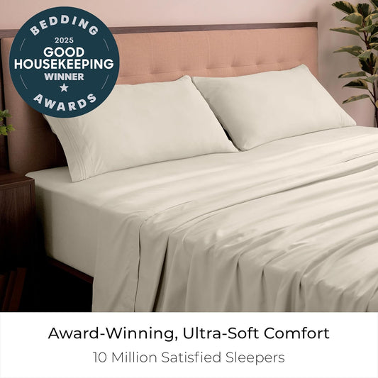 Mellanni Full Sheets Set - 4 PC Iconic Collection Bedding - Hotel Luxury, Extra Soft, Cooling Bed Sheets - Wrinkle, Fade, Stain Resistant (Full, Beige)