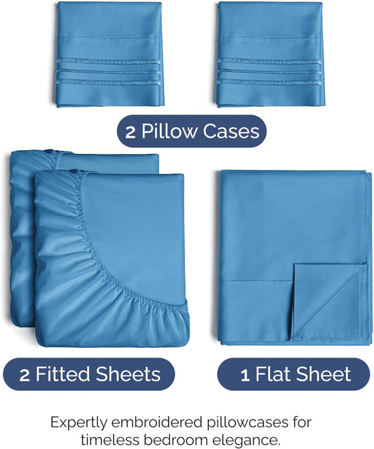 Queen Size 4 Piece Sheet Set - Comfy Breathable & Cooling Bed Sheets Set - Hotel Luxury Bedding for Women, Men, Kids, Teens, Boys & Girls - Deep Pockets, Soft and Wrinkle Free - Oeko-Tex - Denim Blue