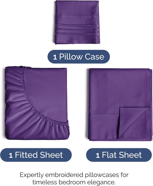 Twin XL Size 3 Piece Sheet Set - Comfy Breathable & Cooling Bed Sheets Set - Hotel Luxury Bedding for Women, Men, Kids, Teens, Boys & Girls - Deep Pockets, Ultra-Soft, Wrinkle Free - Oeko-Tex - Purple
