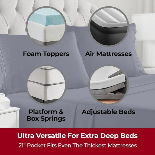 Mellanni Extra Deep Queen Sheets - 4 PC Iconic Collection Bedding - Hotel Luxury, Ultra Soft, Cooling Bed Sheets - Wrinkle, Fade, Stain Resistant (Queen, Royal Blue)