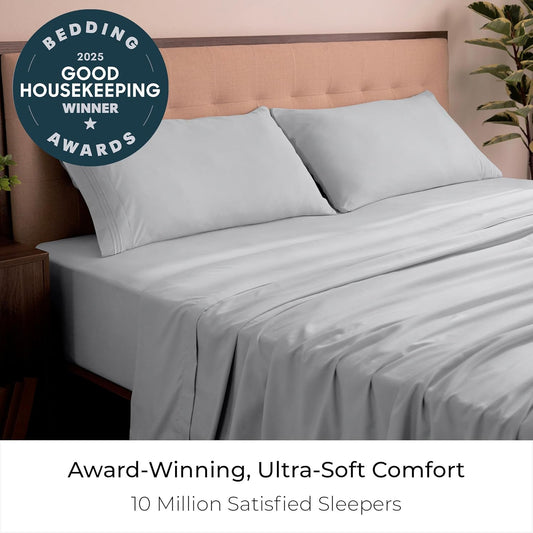 Mellanni King Sheets Set - 4 PC Iconic Collection Bedding - Hotel Luxury, Extra Soft, Cooling Bed Sheets - Wrinkle, Fade, Stain Resistant (King, Light Gray)