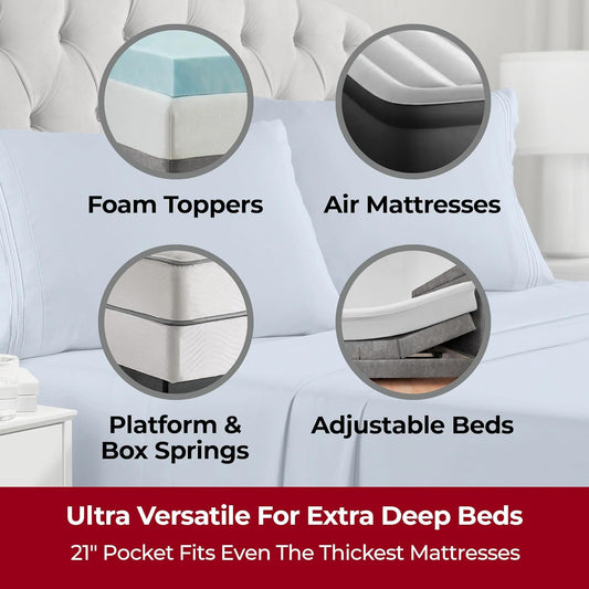 Mellanni Extra Deep King Sheets - 4 PC Iconic Collection Bedding - Hotel Luxury, Ultra Soft, Cooling Bed Sheets - Wrinkle, Fade, Stain Resistant (King, White)