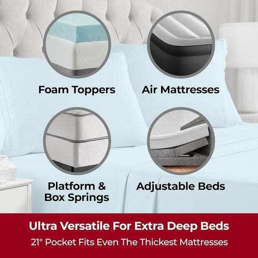 Mellanni Extra Deep California King Sheets - 4 PC Iconic Collection Bedding - Hotel Luxury, Ultra Soft, Cooling Bed Sheets - Wrinkle, Fade, Stain Resistant (Cal King, Spa Blue)
