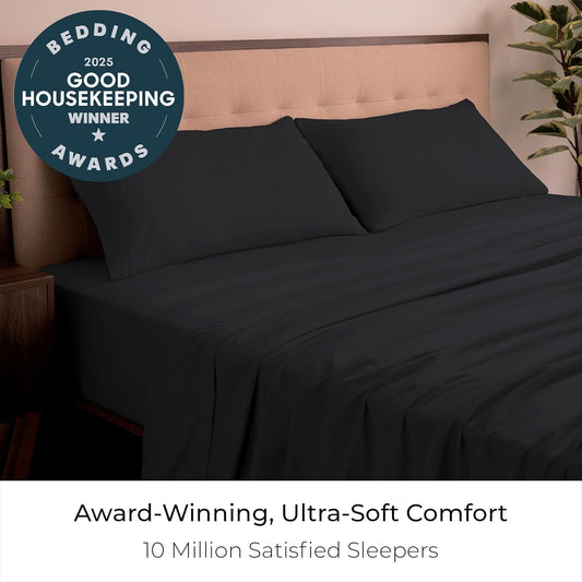 Mellanni King Sheets Set - 4 PC Iconic Collection Bedding - Hotel Luxury, Extra Soft, Cooling Bed Sheets - Wrinkle, Fade, Stain Resistant (King, Black)
