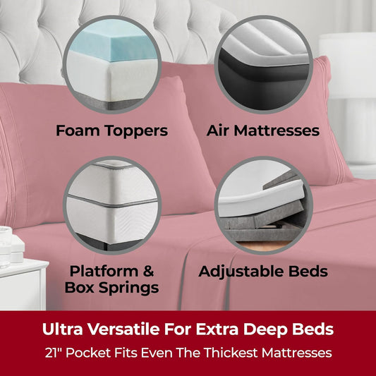 Mellanni Extra Deep Queen Sheets - 4 PC Iconic Collection Bedding - Hotel Luxury, Ultra Soft, Cooling Bed Sheets - Wrinkle, Fade, Stain Resistant (Queen, Brick Red)