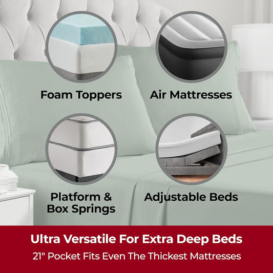 Mellanni Extra Deep Twin XL Sheets - 3 PC Iconic Collection Bedding - Hotel Luxury, Ultra Soft, Cooling Bed Sheets - Wrinkle, Fade, Stain Resistant (Twin Extra Long, Sage)