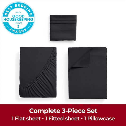 Mellanni Twin XL Sheets Set - 3 PC Iconic Collection Bedding - Hotel Luxury, Extra Soft, Cooling Bed Sheets - Wrinkle, Fade, Stain Resistant (Twin Extra Long, Black)